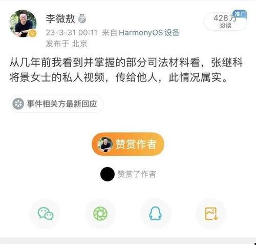 话说那天,李微敖突然在微博上发布了一条消息,瞬间吸引了无数粉丝的关注。他写道:“有些事情,不吐不快。”这句话一出,网友们纷纷猜测,这背后到底隐藏着什么秘密呢?